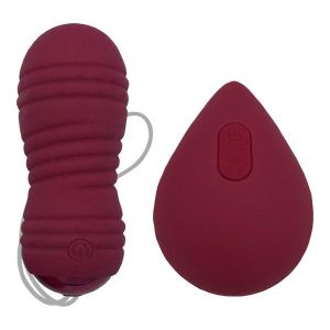 色はワインレッドで、本体はシリコン素材で触り心地も良くて、入手もかんたん!本体はUSBで充電可能で、リモコンは使いやすい単四電池なので、お手軽に楽しめるんだよ。