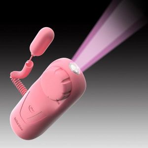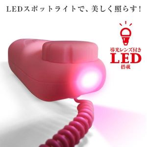次に、LEDスポットライトもついてるの!グリップしたまま操作できて、ピンポイントで照射できるのよ。さらに、ピンク色のレンズを使うことで、対象物を美しく照らして、興奮度がアップしちゃう!