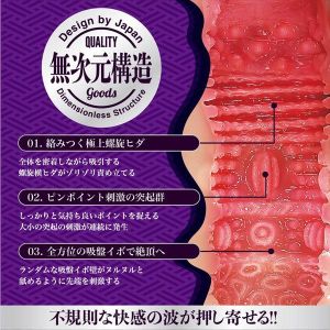 ここの入り口には、絡みつく極上螺旋ヒダがあるんだよ。そして、中間部には突起群が覆われているんだ。これで、フィニッシュする前に不規則な快感の波が押し寄せてくるんだ。