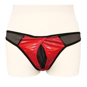 「めんずぐるーぶ」っていうブランドのパンツ、エナメルっていうツルツルの素材だよ。はきごこち気持ちいいし、リングふたつついてるからおしゃれだし、ワイルドでセクシーな感じがするんだ。スペシャルアンダーウェアだから、ホットな気分になれるよ。