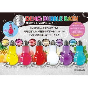 グレープの匂いの泡のお風呂がとっても楽しいの!電球形のボトルから6種類のおやつの匂いがして、もこもこの泡の中でリラックス♪使い方は、お風呂の蛇口の下にこれ(たぶん20ml)を入れて、たっぷりお湯を注いで泡立ててね。シャワージェルとしても使えるから、ぜひ使ってみて!