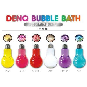 このアイテムって、電球型ボトルに入っているんだよ。しかも、6種類のデザートフレーバーがこもっているから、どのフレーバーにしようか迷っちゃうくらいの豊富さなんだ!泡風呂をつくるときは、浴槽の蛇口の下に20mlぐらい注ぐだけで、簡単にもこもこの泡風呂を作れるんだ。