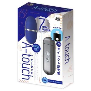 すっごい新しいエータッチっていうのがあるんだよ!ケーブルいらずで充電できるんだって!USBスティックみたいなボタンをパソコンやモバイルバッテリーに差し込んで充電しちゃうんだ。振動も7段階で超パワフル!ワンボタンで使えるかんたんさだよ!直感的プレイが手に入っちゃう!お風呂でも楽しめるから快適快感、スマート性活が手に入っちゃうよ!充電時間は約90分で、使い続けられる時間は約60分だって!けど、場合によっては違うかもしれないから注意してね!