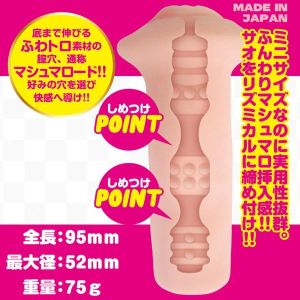ふわトロいミニオナホがあるよ!内部の形が3種類で、マシュマロードって呼ばれてるよ!射精感がすごいのを選んでね!サトミっていう穴は全体にヒダがあって、ぐにゅぐにゅと気持ちいいよ!