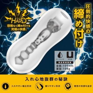 メンズマッハシリーズの時短ホール!忙しいお兄ちゃんにピッタリだよ!振るだけでいいの!すぐにフリカンできちゃうフラッシュが気持ちいいんだ!中盤に4つの締めがあって、ぎゅーっとサオを締めつけて、射精できるよ!入れる部分は広くて、どんなサイズでも楽に挿入できるから、簡単に射精しちゃおう!