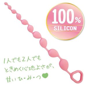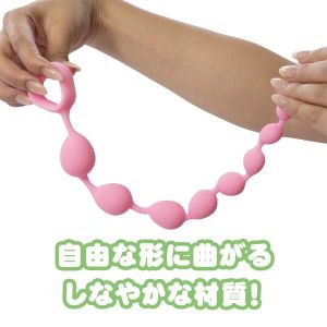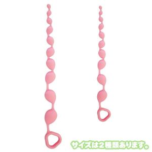 かがやく女性のもとへ、アムールブリエからア○ルの商品が出たよ!ドーナツみたいな可愛い形が、お○りにぴったりでしょ!シリコンで作られた可動式のビーズが10個ついて、全長は34cm。一番先っぽは2cmと2.6cmのビーズ、その後ろには直径2.2cmのビーズが3つつながって、最後には直径1.6cmのビーズが5つもぶら下がっているのよ!