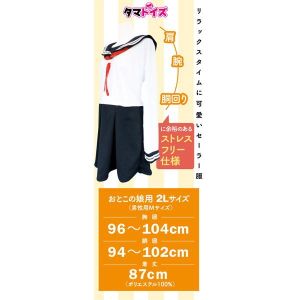 「みんな見て!可愛いセーラー服見っけ!」大きい女の子でもゆったり着れるワンピースタイプ。ストレスフリーで、スカートは裏起毛で肌触りバツグン♪【おとこの娘用2Lサイズ】胸囲96~104cm/胴囲94~102cm/着丈87cm/ポリステル100%。今すぐ爽やかな半袖セーラー服でリラックスタイムを楽しもう!