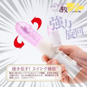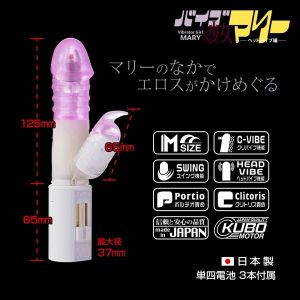 このバイブ少○マリー ヘッドバイブ編はね、ワイドな面でクリちゃんを責めるスイングバイブなんだ。大きな面でクリトリスを集中して刺激して、しっかりとパワーを伝達するの。その上、スイングはち○圧に負けないパワフル仕様で、内側から女性を掻き乱しちゃうんだ。それに、本体先端には強力なヘッドバイブが搭載されてるんだよ。だから、ジンジンと響く様な刺激が味わえるの!