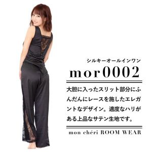 あのね、モンシェリっていう女の子にとって優しいブランドから、ルームウェアが出たんだよ!このモンシェリ ルームウェアmor0002は、エレガントで大胆なスリットがあって、それにはね、レースがふんだんに施されているから、おしゃれで素敵なデザインなんだ。あとね、生地が上品でハリがあるサテン生地なんだよ。