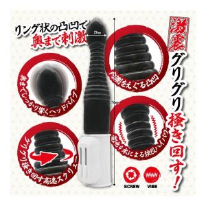 こちらのアナルバイブは、いろいろな種類の刺激を与えてくれるんだよ!まずは、アナルにピッタリなサイズで、リング状の凹凸ボディが感覚をより強くしてくれるの。そして、ヘッドバイブで奥までしっかり刺激を与えてくれるし、高速スクリューがグリグリと回転して、心地よい快感を味わえるの。もちろん、無段階で振動や回転のコントロールもできちゃうから、自分に合った感じで楽しめるの。さらに、4本の電池で驚きの強力振動を体感できるんだよ!