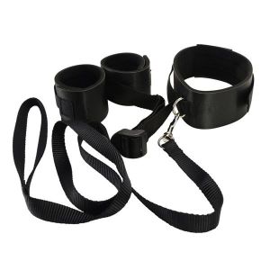 手枷だけじゃ物足りないって思ったら、この首輪も付いてるからさらに自由を奪われちゃう!バックルで調節できるから、体型に合わせて使えるよ。ひとりで遊ぶのもいいけど、パートナーがいるともっと楽しくなっちゃうかもね。