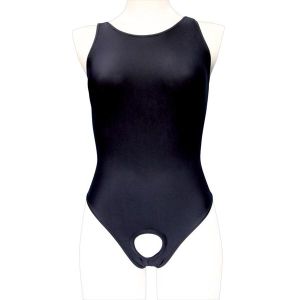 光沢エナメルオープンバック競泳水着 おとこの娘用