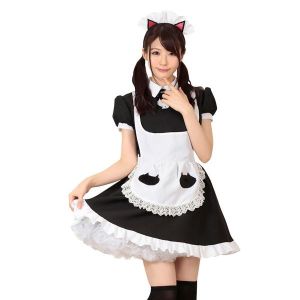 このキャッツメイドは、黒猫の可愛さがたくさん詰まってるんだよ!ショート丈のスカートと、エプロンを合わせたスタイルがとってもキュート♡ぶかぶかじゃなくて、体にピッタリしたデザインで、おしりも見えちゃうかも!?それだけじゃなくて、全体に黒い色で統一されているので、セクシーさも倍増しちゃってるんだよ!