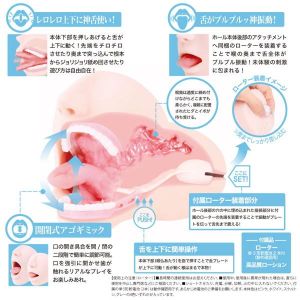 小倉由菜ちゃんの協力で、めっちゃリアルな口や顔の形を作ってるの!前作から更に進化してて、舌と顎も自由に動かせるんだって!おしゃぶりの後ろの穴にローターをつけると振動して、舌先まで伝わるよ!口の中もリアルで、本物と見間違えちゃうほどだよ。VRと一緒に使えば最高だね!でも、ジョークグッズだからね。他の使い方は自己責任でね。電池は動作確認用だから、新しいのを用意してね。