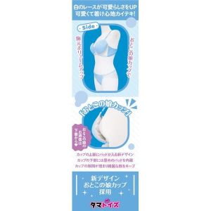 新しいカップができたの!おとこの娘カップっていうの。上にパッドが入って、下にもパッドがあるよ。カップのあいだもなくなって、形がキレイになるんだって。色はアクアブルーで、さわやかだよ!