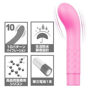 さらにね、このグッズ、曲がった先端がGスポットを直撃してくれるんだって!それに、10種類の振動パターンがあって、自分好みのパターンが見つかるよ!それに、生活防水もあるから、お風呂で使うこともできちゃうんだ!