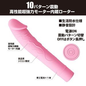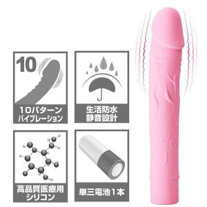 ね、これってスティックバイブって言うんやで!ピンポイントであたったり、オールマイティにつかえるよ!電池は別売りやけど、単三電池がひとつで動くんやで♪素材は、気持ちいいシリコン素材で、しっかり振動してもぜんぜん音がしないんや!ヒミツは先っぽが曲がってるからGス○ットにもぴったりやで!10パターンの振動があるし、お風呂でも使える生活防水やから、どこでも楽しめる♪