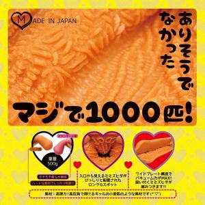 「みみずちびキター!”ホンモノみみずちびを内部ニ入レタ新商品デス!ヒダ数超パワフルで、男子をメロメロにするアソビモノ! 使ってニ暫息着クト、熱イイ快感ガ下半身カラ湧キ出ス!オススメ!