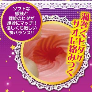 ねーねー、聞いて!フワフワの螺旋が包んでくれるんだって!人の肌みたいにサラサラの素材でできた横ヒダはぴちぴちして気持ちいいんだよぉ。そして、ほら、キュウっと吸い付いてくれる口があるんだって!エッチなこと言わないでぇ。でも、空気が抜けても太っちょ感なしで、しっかり絡みついてくれるんだって!楽しいぴょん♪