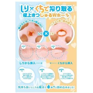 みんな、こんにちわ!今日は、ふたあなマジック「しり×くち」をご紹介しちゃうよ!これ、ひとつのオナホで、二つの穴が楽しめるんだって!「しりちゃん」って、さわったら細かいヒダとイボが絡み付いて「きつ」な感じがするんだけど、電車に乗ってたら誰かにバレないくらいの音だよ!それに、「くちちゃん」は、本物みたいな舌で舐められて「じゅる」って気持ちよくて、ご飯のときにも使いたいくらいだよ!「しりちゃん」を入れると縦ヒダが絡み付いて、壁や細イボで絞り込まれる感じがあって、最後に先っちょをチロっと舐めてくれるんだ。それに「くちちゃん」だと、肉舌が絡み付いて、たくさんのコブ壁や細イボ郡があって、最後はズボンドリップのように飲み込んでくれるよ!「しり」と「くち」、どっちもすごく気持ちよくて、欲張りさんにはぴったりのオナホなんだよ!タダでさえ贅沢なオナホルだけど、この「しり×くち」はもっと贅沢で2つの快感が味わえちゃうんだから、めっちゃオススメ!