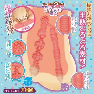 まず、このおもちゃのすごいところは「非貫通」ってこと!あれ?えっと、「入れられない」っていう感じだね。それから、「外層」が硬くて、「内層」がぷにぷにしているんだって。ちょっと恥ずかしいんだけど、女の子のお肌みたいな感じで、それが2層あるからすごく気持ちいいんだとか。それに、中には「ヴァージンモード」と「純潔アナルモード」っていう2つも穴があるから、好きな方を使えばいいんだって。あ、でもどっちも試してみたいなあ。