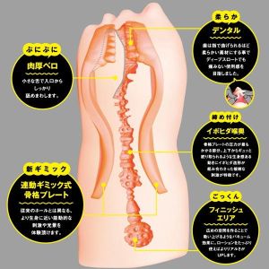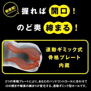 このフェラホールは、人間の体をモデルに作られてて、骨格プレートっていうものでできてるんだ。それが、すごい体感を実現しているんだよ。「あーん」とか言って口を開いたり、喉が締まったり、フェラホールに指を入れた時も痛みが少なくって、全身がリアルな感覚で満たされるんだよ!