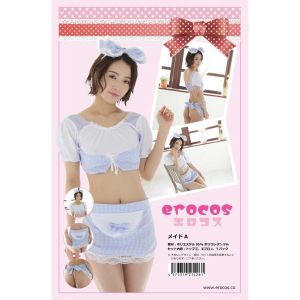 ねぇねぇ!メイドAのライトブルー×ホワイトって知ってる?めちゃくちゃ可愛くて、メイドさんのコスプレが楽しめちゃうんだよ!トップスとエプロンに加え、なんとTバックもついてくるんだから、お得感たっぷりだよね~!!