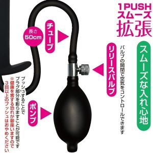 ぽんぷをぷっしゅ!プラグをふくらませて、あっきゅうをこントロール!お気に入りのサイズに変えられるよ。つかいかたはかんたん!本体とぽんぷをセットして、リリースバルブをしめて、ぽんぷをぷっしゅ!お気に入りのサイズになったら、リングをさ○と睾○につけるだけ。ぽんぷと本体は膨らんだまま付け外しができるから、つかいやすいよ。状況によって、いろんなつかいかたができるんだ。本体にはメタル玉2個入ってるから、中に入れるとキャキャって楽しい。スムースシリコン素材だから、入れてる感じもすごくいいよ!初めての人でも、うわきゅうしゃでも大満足!下半身をコントロールして、気持ちよくなろう!
