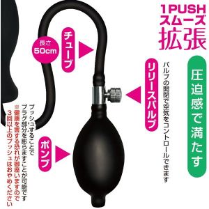 ぽんぷをぷっしゅ!プラグをふくらませて、あっきゅうをこントロール!お気に入りのサイズに変えられるよ。つかいかたはかんたん!本体とぽんぷをセットして、リリースバルブをしめて、ぽんぷをぷっしゅ!お気に入りのサイズになったら、リングをさ○と睾○につけるだけ。ぽんぷと本体は膨らんだまま付け外しができるから、つかいやすいよ。状況によって、いろんなつかいかたができるんだ。本体にはメタル玉2個入ってるから、中に入れるとキャキャって楽しい。スムースシリコン素材だから、入れてる感じもすごくいいよ!初めての人でも、うわきゅうしゃでも大満足!下半身をコントロールして、気持ちよくなろう!