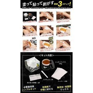 セット内容は、両すね毛で1-2回分とペーパーが30枚、スパチュラ1本、そしてメンズゴリラシュガーワックスが200g!また、説明書にはイラストも入ってるから、脱毛スクール監修ってすごく安心できるよね。
