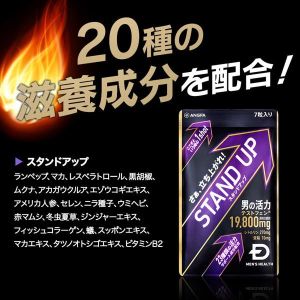 「スタンドアップ」には、マカを超える活力成分の「テストフェン」が19,800mgも入っているんだ。それに加えて、良質なアミノ酸が含まれる鶏卵由来のペプチド「ランペップ」、2つの成分「L-シトルリン」と「レスベラトロール」も配合されているんだって。