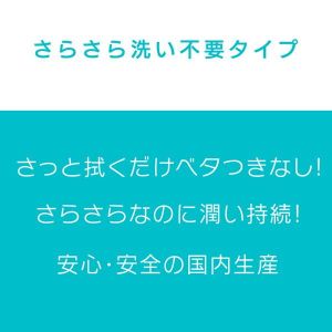 どうせなら、使用にも注意しなくちゃね。でも、「さらさら洗い不要タイプ」だからね、ティッシュでさっと拭くだけでベタつき気にせずプレイできるんだよ!