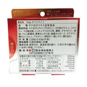 この1DAYダイナマイトさ、プロタミンっていう成分を使ってるんだって。それにカキの肉やマカ、トンカットアリ100倍濃縮っていうものも配合してるんだって!え?それって何?カキ肉は滋養強壮にいい成分なんだって。マカはもともとペルーの人が食べてたんだって!エネルギーをつけてくれるんだって!トンカットアリ100倍濃縮っていうのは、元気な体を作るための成分がたくさん入っているんだって!