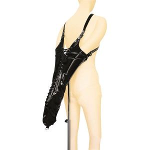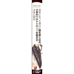 両手を背中で拘束できちゃうアイテムだよ。スリーブがとっても魅力的で、腕をスリップできるようになってるの。使い方は簡単だよ!腕を差し込んだら、2本のベルトを胸元で交差させて、本体に固定するだけだよ。身長が150cm~175cmぐらいの人に使えるよ。リングもついてて、アレンジ次第で楽しめちゃうね♪