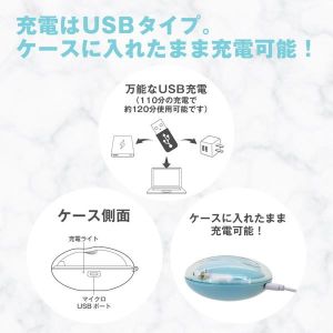 「しかも、このジューシー ラムール シークレットラブ ブルー Juicy Lamour Secret Love Blue、ケースが付いているから保管も安心。しかも、USBタイプで充電できるから、大好きなケースに入れたまま充電できて、電池が切れる心配もいらないんだよ。」