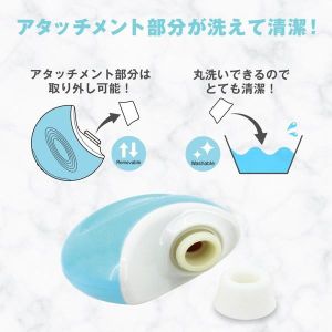 「アタッチメントの部分も取り外し可能だから、洗って衛生的に使えるし、吸引や振動が5種類から選べて、6段階の振動で自分好みに調整できるから、自分にあった使い方ができるんだね。しかも、電源ボタンを押すたびに振動パターンが変化するから、飽きずにずっと使えちゃうの!」