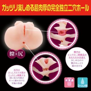 おーい!新しいおもちゃできたよ!トルソー型で、おちんちんとおしりの2穴があるんだって!ぷっくり膨れたまんまんの中にピンクの肉壁が待ってるよ♪ 4本の極太ヒダと3本のリング状ヒダが、締め付けてくれるから気持ちいいんだって!最深部には先っぽが刺激されるし!素材も安心の日本製で食品検査済みだから、ローションもついてるよ!
