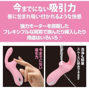 まずね、これは振動と吸引の機能があって、今までにない強力な吸引力で唇に包まれてるみたいな気持ち良さがあるの。フレキシブルな両耳で「挟んだり」「挿入したり」いろんな使い方ができるから、自分に合った使い方ができるのもいいよね♪