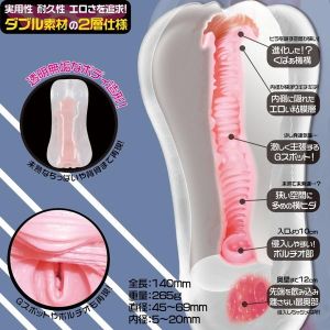 ねえねえ、これはジョークグッズなんだって!使い方によっては、おこられちゃうから気をつけなきゃだよ。でもね、このおもちゃ、すごくシンプルなヒダがあるんだ。お母さんみたいな気持ちいい感じがするの。それに、けっこう硬めのイボもあるの。娘みたいな刺激もあるの。二つが一緒に楽しめる『ダブルパラレル構造』っていうのが特徴で、入り口も前後にあるんだ。弾力もあるので強く感じたい人にオススメだよ!