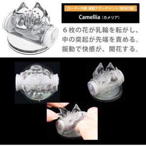 そして、椿の花弁をイメージしたカメリアタイプ。6枚の花弁が、乳首と乳輪をつまむように回転して、中央の無数の突起が責め続けるよ!これは絶対体感してほしい!