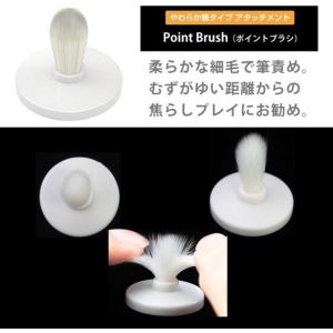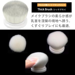 最後に、2つのやわらか筆タイプ。ポイントブラシは、細かな筆で乳首をピンポイントで責めまくってくれるよ!むずがゆい距離からじゃれつきながら焦らしプレイが最高!シックブラシは、最も「ふわふわ」な太筆で乳首を包み込むように刺激するんだ!乳首はまるで涅槃の境地みたいだね!