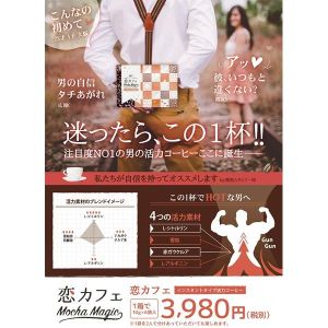 しかもね、インスタントコーヒーだから、サプリを続けるのがめんどくさい人にもオススメだよ。男子の自信を取り戻したい人や、ムードを盛り上げたいカップルにもピッタリ!