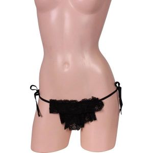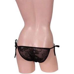 このショーツは、レースがいっぱいでとっても可愛いんだよ。それに、サイドにはおしりをキュートに飾ってくれるリボンもついているんだ!まるで幼い女の子みたいで、きゃわいいよね!