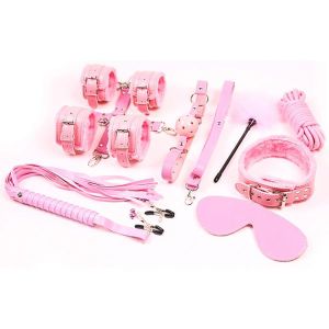 SM好きなら最高のセット!クリップや手枷足枷、十字ベルトなどアクセサリーも満載!アイマスクや手足枷は柔らかくて使いやすいよ。首輪にリードもついて、主従関係もバッチリ!レザー調の高級感は最高!