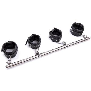 素材は合皮、ウレタン、ステンレスで、カラーは拘束棒がシルバーで、ベルトがブラックだよ!手枷足枷拘束棒、ぜひ試してみてね!
