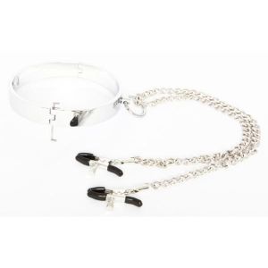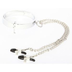 LEATHER WORKS 070 ニップルチェーン付メタル製首輪(女性用)