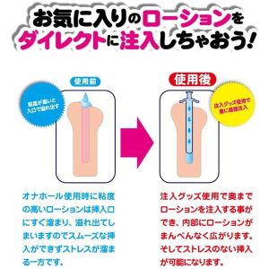 注射器のような形で、ホールの奥までムラなくローションを注入できるんだ!内部が乾きにくく、オナホを気持ち良く使えるんだよ。