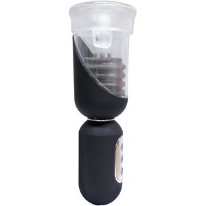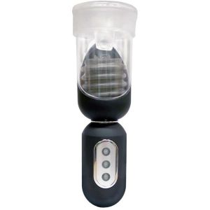 新しいオナホがあるよ!電源ONすると、吸う力と振動で亀頭を責めるんだ。強すぎたら、エアリリースボタンで力を抜けるよ。中についてるバイブはイボの付いた柔らかいシリコンでできていて、優しくするのも強くするのも自由だよ。ずっと吸いつづけられるようになっているよ。使う前にローションを塗ってね。パッキンは取り外して洗えるよ。動くために電池が2本必要(付属品ではないよ)。