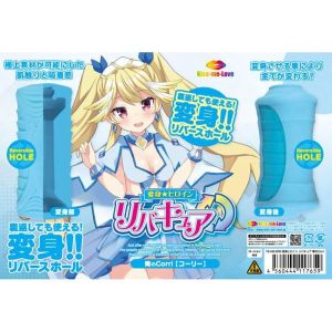 「変身★ヒロイン リバキュア」ってね、オナホールだよ!表面と裏面で違う感じが楽しめるんだって!変身すれば大きくチェンジ!前と後ろで内部構造が違うからお得だよ!もっちり肌質感と吸着感があって、リバーシブルギミックがあるんだって!「青のCorri【コーリー】」は、前はプルプルとまったり感のもっちり吸い付きタイプで、後ろは横ミゾ高刺激快感へと大きく変身するんだって!リバーシブルで刺激が変わるんだよ!楽しみだね!