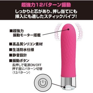 ね、これ知ってる?ロングスティックバイブっていうんだよ!単四電池が2本いるけど(別売だよ)、挿入も押し当てもOK!肌触りもいいよ!パワフルな振動ですぐイキちゃう♪すごいでしょ!根本まで入れられるから、ポル……あ、ううん、すごく気持ちいいんだって!ステキ!12タイプも強力な振動で、高品質シリコンで、水にも強くて、静かなんだよ!